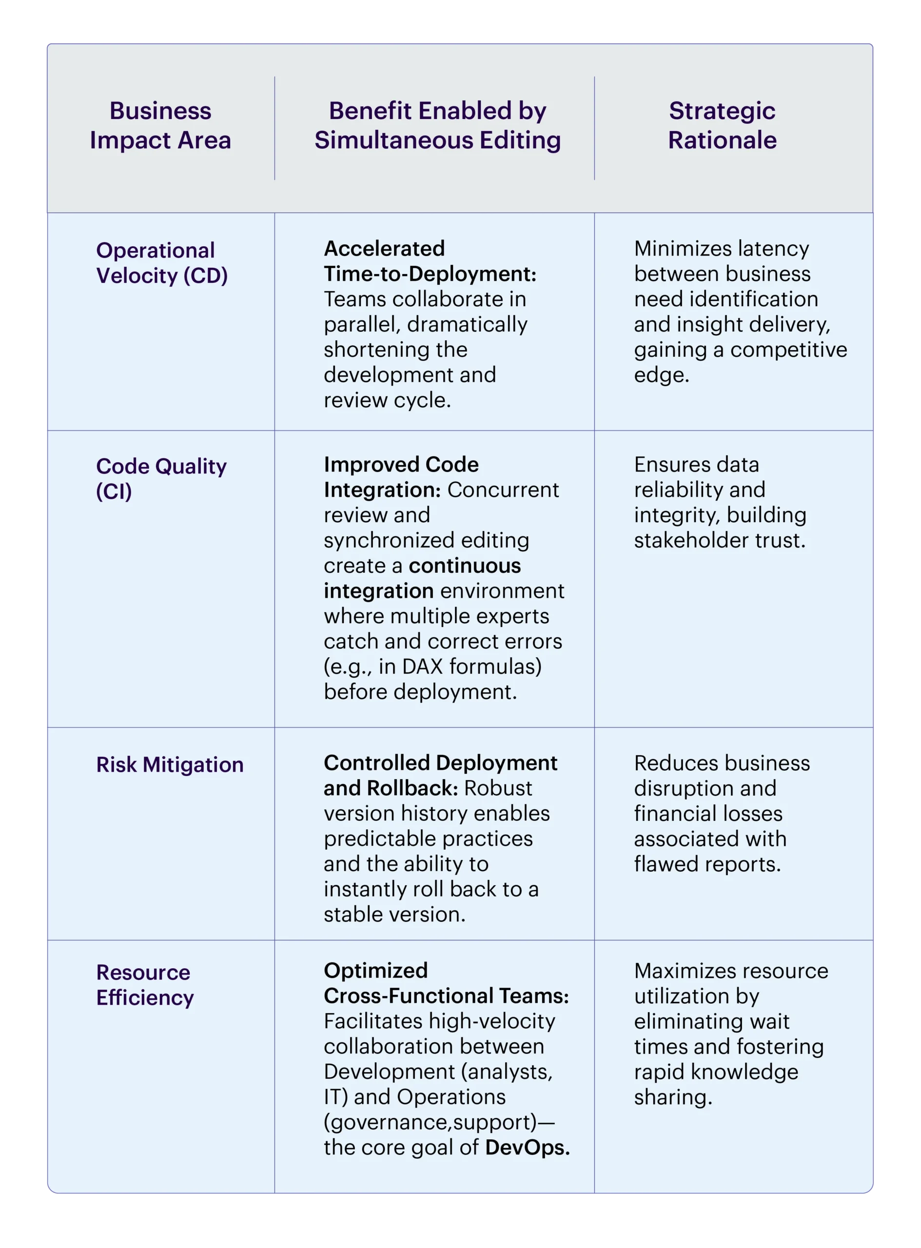 Power BI’s recent advancements in collaborative analytics are a strategic necessity for organizations adopting DevOps principles in their Business Intelligence (BI) workflows. The ability to co-develop and edit reports in real-time fundamentally transforms the delivery lifecycle, translating into accelerated decision-making, enhanced data governance, and the creation of reliable Continuous Integration/Continuous Delivery (CI/CD) pipelines for analytics.